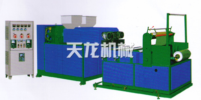 本機組適用于生產(chǎn)低密度聚乙烯(LDPE)塑料流延薄膜,改機采用雙螺桿擠出,兩個進料斗的原料使用不用的配方,生產(chǎn)的薄膜可達到一邊粘的效果,廣泛應(yīng)用于建筑材料、五金配件等包裝。
